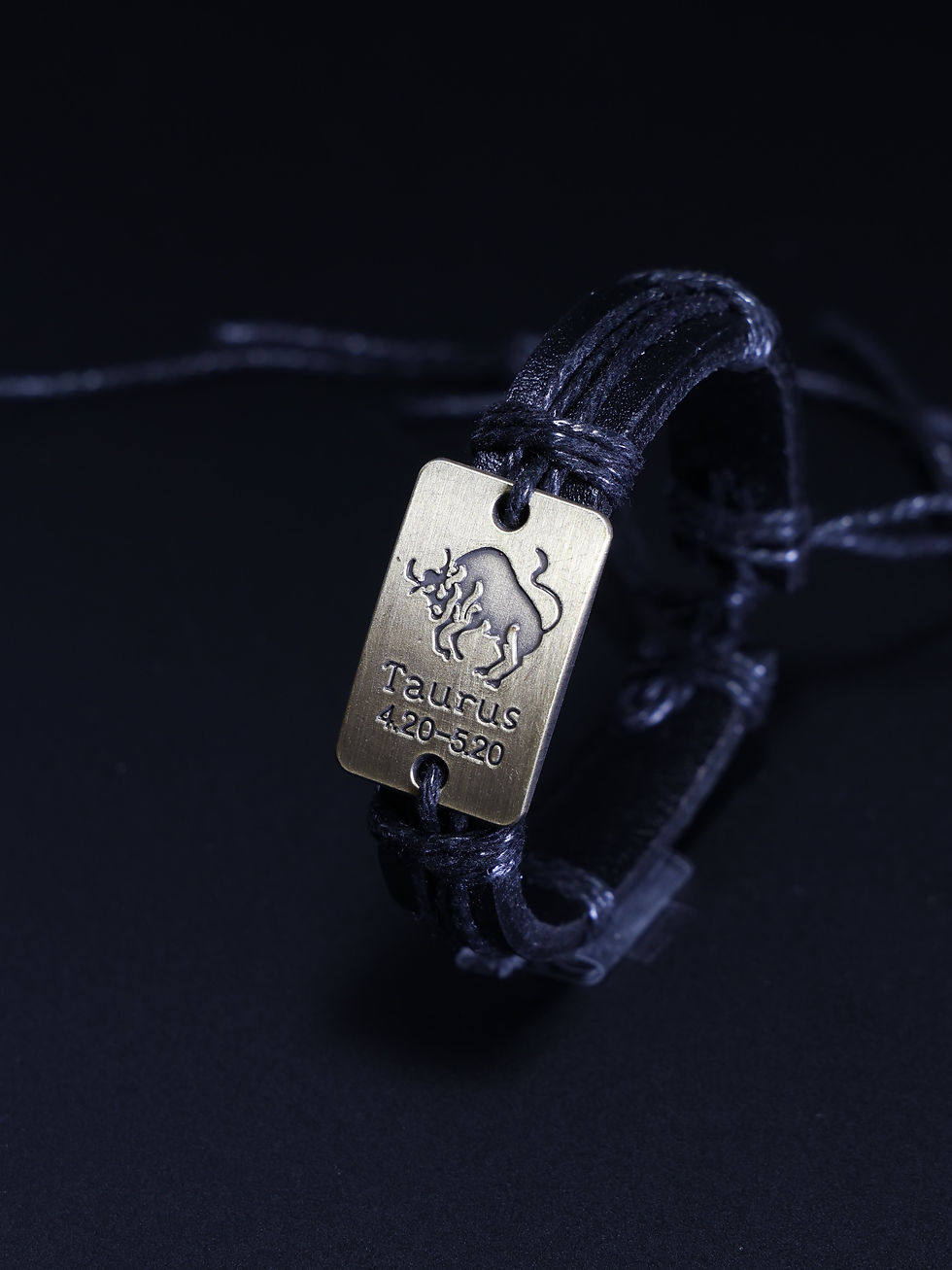 Taurus Zodiac Sign Leather Bracelet, Rectangle Metal Pendant